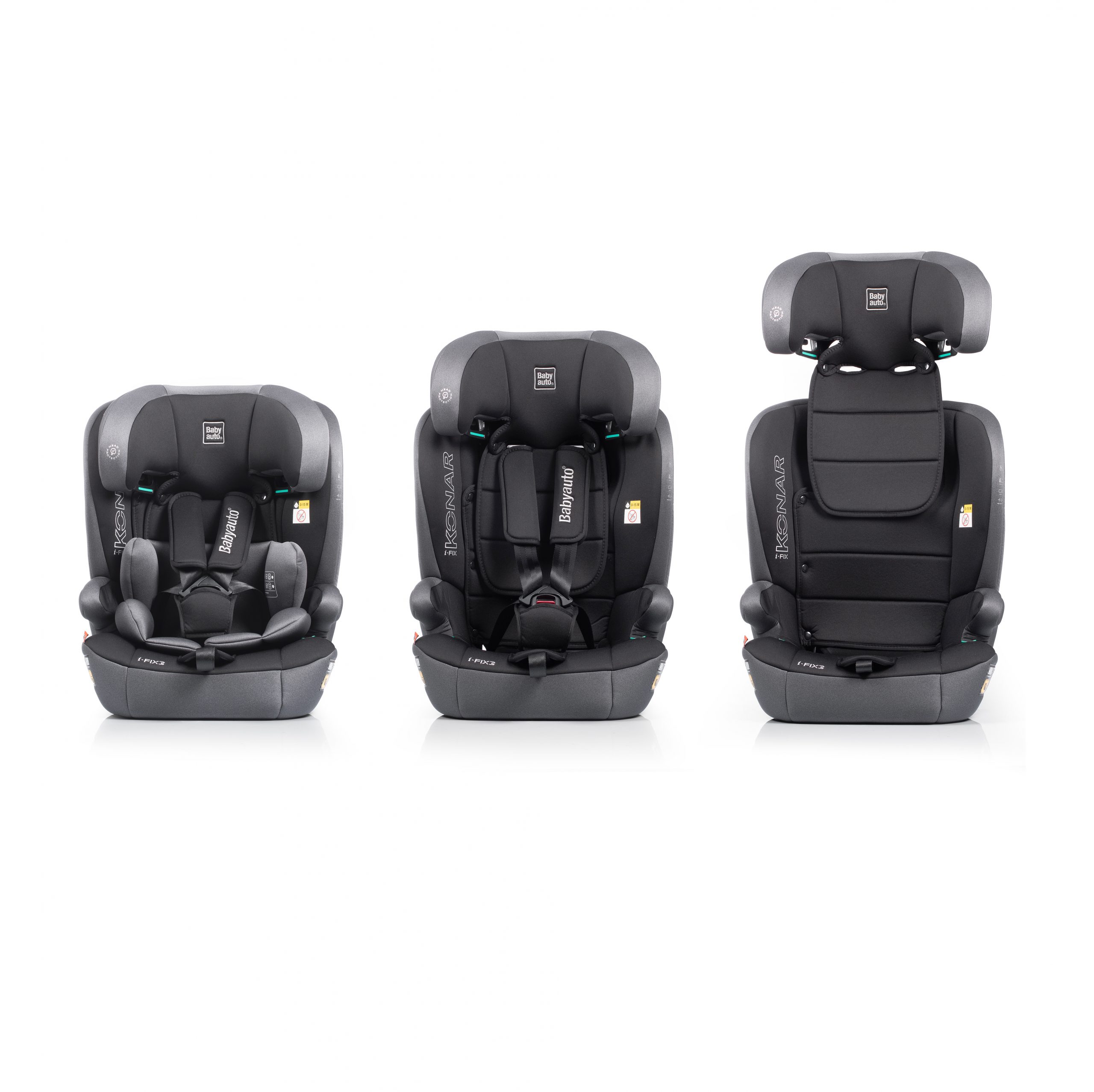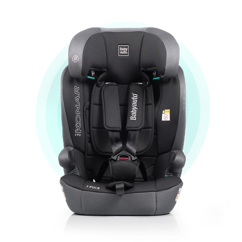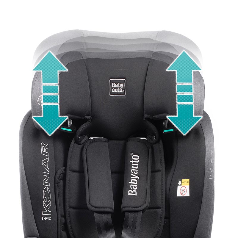 Konar iFix es una silla de auto muy fácil de instalar gracias a su sistema Isofix combinando con el sistema antirotacional Top tether. Con un rango de uso muy amplio, puede ser utilizada desde aproximadamente los 76 y 150 cm del altura. Cuando el niño mide entre 100 y 150 cm se retira el arnés de la silla.