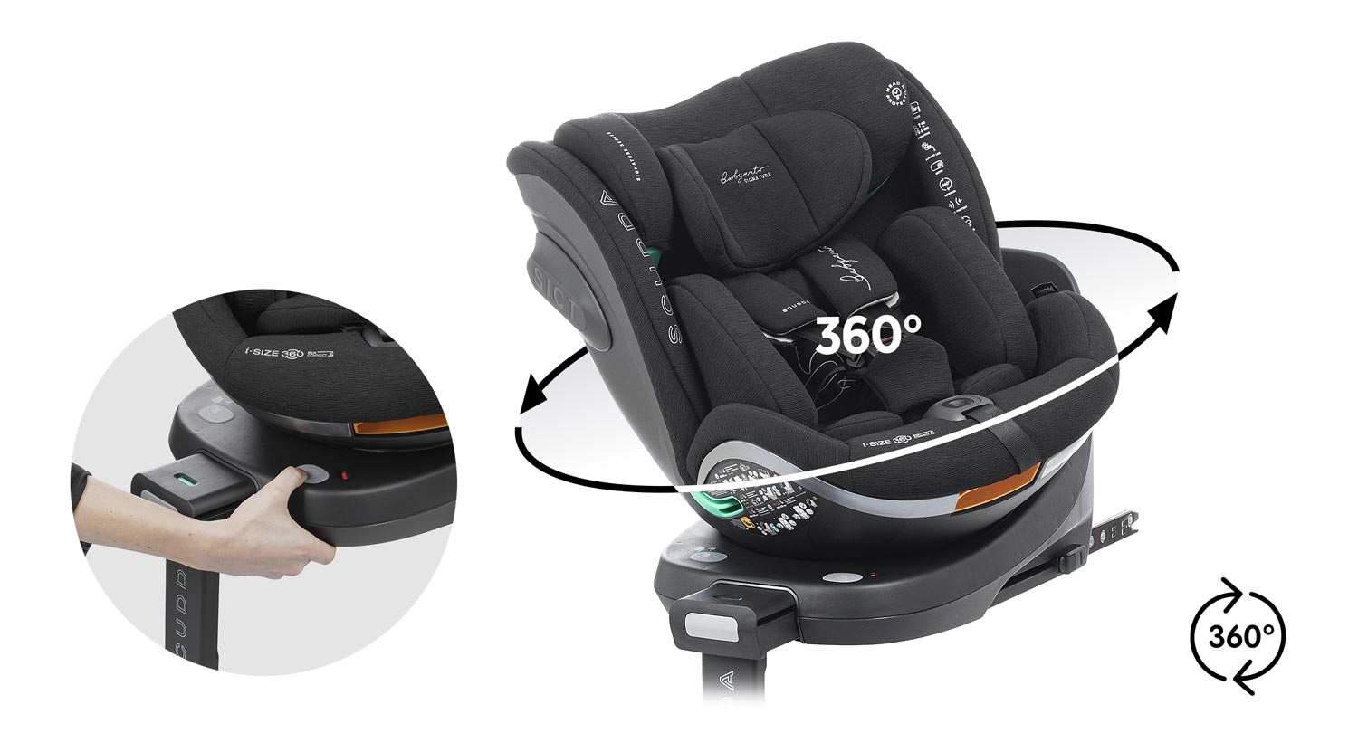 El sistema de giro 360° permite rotar la silla sin interrupciones, facilitando la colocación del bebé en la silla.